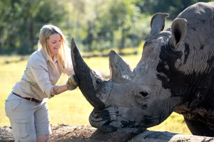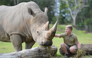 Hello! I’m DJ, a gorgeous southern white rhino and I call Australia Zoo home. I entered the world with a bang, literally! I was born in Victoria during a severe storm. Thankfully, my loving keepers gave me and mum a helping hand during my first few days to recover from this difficult start. So I just love people!